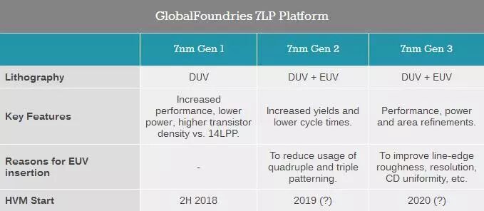 介于此,GF在14nm之后决定放弃10nm节点,直接向7nm制程进军。虽然这个决策稍显激进,但GF也明白步子大了容易扯到啥的道理,决定在光刻技术上稳中求进,使用现有的DUV光刻技术实现第一代7nm工艺的制造,随后再使用EUV光刻进行两次升级迭代。