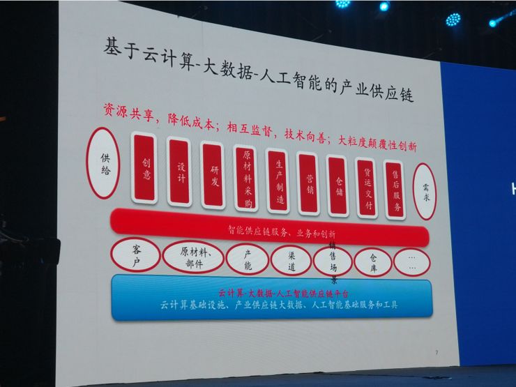 让我以两个例子来解释一下。产业供应链连接供给和需求,涉及创意、设计、研发、原材料采购、生产制造、营销、仓储、货运交付、售后服务……等等许多环节。很多企业深耕产业供应链,做了大量的工作,包括各个环节的自动化和优化。大家能感受到的一个痛点是,我们缺乏一个按客户、原材料、部件、产能、渠道、销售场景、仓库、……等一系列产业供应链核心基本要素组织起来的联邦式的全供应链信息平台,把云计算基础设施、产业供应链大数据和人工智能基础服务和工具的技术细节以包容的和多元化的方式包装起来,以业务为口径,支持用户便捷地开展智能供应链服务、业务和创新。只有在这样的平台上,我们才能更好地打通供应链的多个环节,创新短链和反向链商业模式,更好地连接供需,提高供应链效率。