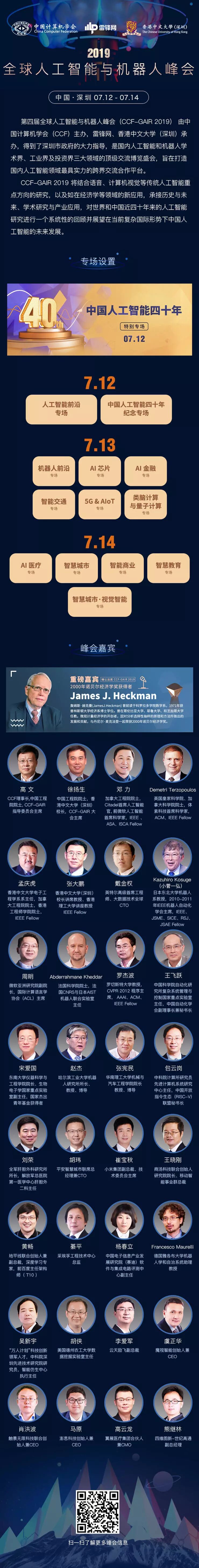 2019 年 7 月 12 日至 14 日,由中国计算机学会(CCF)主办、雷锋网和香港中文大学(深圳)联合承办的2019 全球人工智能与机器人峰会(简称 CCF-GAIR 2019)将于深圳正式启幕。