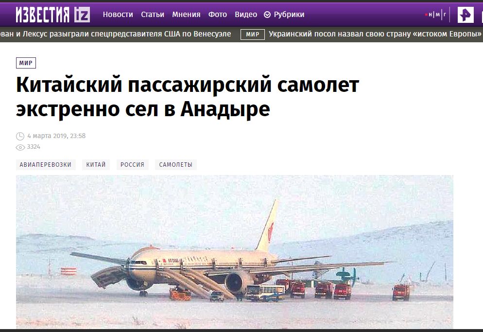 俄罗斯《消息报》:中国客机备降阿纳德尔机场↓