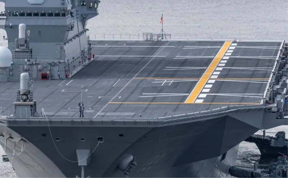 今年6月,“出云”的飞行甲板已经完成耐热性改装并绘制了新的甲板布局
