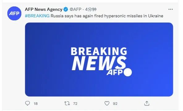 据法新社刚刚消息,俄罗斯方面称其再次向乌克兰境内发射高超音速导弹。