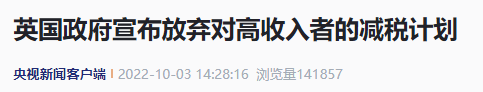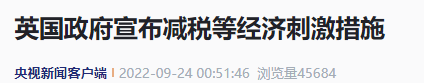 英国政府9月23日宣布一系列措施以期提振经济,其中包括大规模减税方案,计划把对年收入超过15万英镑人群征收的45%的最高所得税降至40%,结果招致广泛质疑和批评。该政策也在过去一周引发市场动荡,导致英镑对美元汇率创下历史新低。