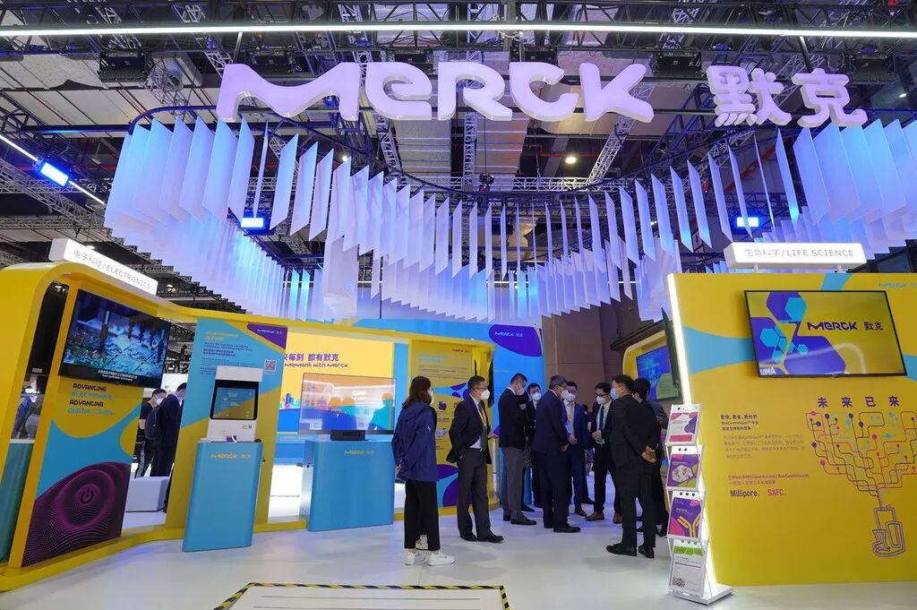 6日,观众在进博会德国企业默克展位参观。(IC photo)