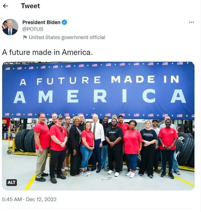 拜登推文截图:“一个美国创造的未来。”