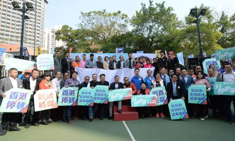 10日,建制派政党和团体发起“反拉布、支持修改议事规则”联合行动,多名建制派议员及前议员谭耀宗、珠海社团总会长邝美云等均到场支持。他们形容本次活动是“建制派大团结”,希望唤起社会各界支持“剪布”。工联会前立法会议员王国兴表示,有关修订“合情合法合理”,让主席能运用权力管理会议时间,提高议会效率,如同有足够执法权力,才能保证球赛顺利进行。