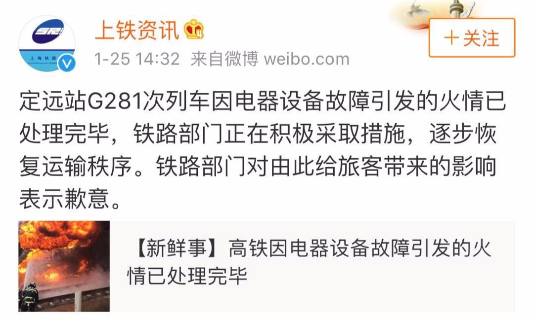 高铁着火? 官方通报