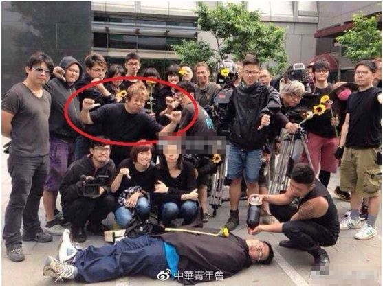 “网上看到的这张照片是我当时拍片的工作人员,大家反对台湾‘立法院’黑箱操作,才进行的拍照动作,他们根本不是‘太阳花运动’的学生,旁边还有摄影机可证明。”