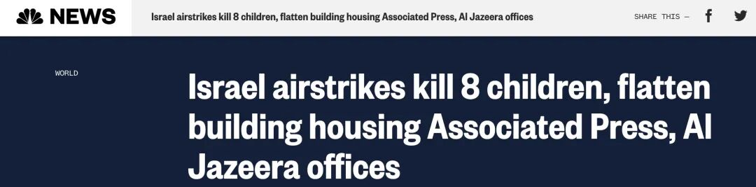 报道提到,同日,以色列国防军还轰炸了加沙半岛电视台美联社等媒体所在大楼。据报道,一位名叫哈迪迪的男子告诉媒体,他的妻子和5个孩子前一天去和亲戚一起庆祝开斋节,结果妻子和3个孩子都死了,还有一个孩子失踪,只有5个月大的儿子活了下来。