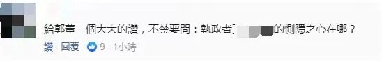 还有网友在称赞郭台铭的同时质问蔡英文:给郭董一个大大的赞,不禁要问:“执政者”(蔡英文)的恻隐之心在哪?↓