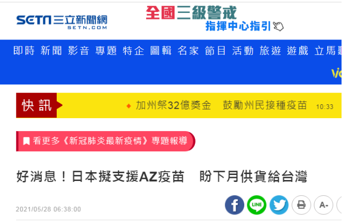 日本想起不敢大范围使用的疫苗:给台湾吧!