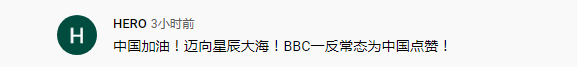 也有网友对于这是BBC发出的视频和评论感到有点不可置信,并表示“中国加油!迈向星辰大海!BBC一反常态为中国点赞!”