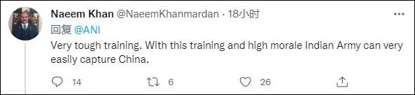 还有网民说这是“非常艰难的训练,有了这种训练及高昂士气”。这样的评论竟令人一时分不清究竟是认真说还是在“钓鱼”,以至于有中国网友开玩笑地说,“有没有可能印度也有战忽局?”