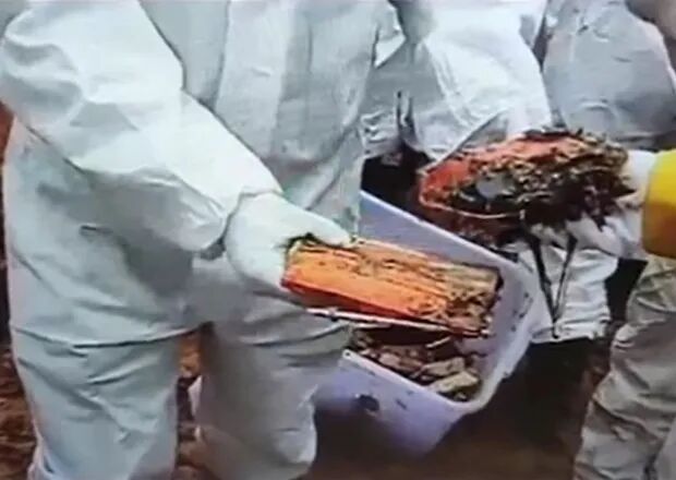3月25日,核心区域内发现橙色碎片。以下图源央视新闻截屏