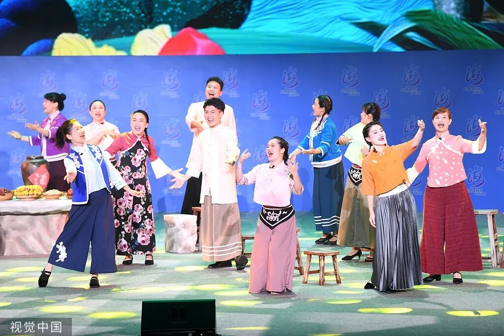 2022年7月13日,福建厦门,第十四届海峡论坛大会举行。论坛大会开始前的文艺表演——表演唱《同根缘》。中新社记者 王东明 摄