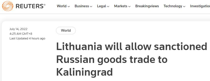 路透社说,尽管表示将遵循欧盟新的指导方针,但立陶宛外交部在一份声明中声称,此前阻止许多受制裁货物运输到加里宁格勒的规定“更容易接受”:“加里宁格勒过境规则可能会给人留下一种不合理的印象,即跨大西洋共同体正在软化其对俄罗斯的立场和制裁政策。”