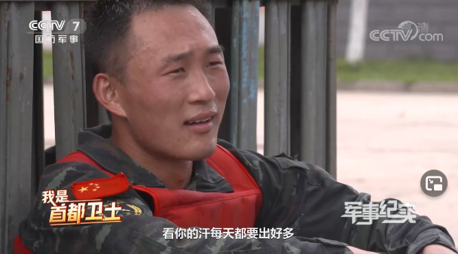结果有网友发现,“心战”作业车上正播放着CCTV-7国防军事频道《军事纪实》7月27日的节目《我是首都卫士》,画面上是武警北京总队某机动支队特战队员尹春生在一场搏击比赛后讲述自己“经常每天出的汗比喝的水还多”的训练日常。