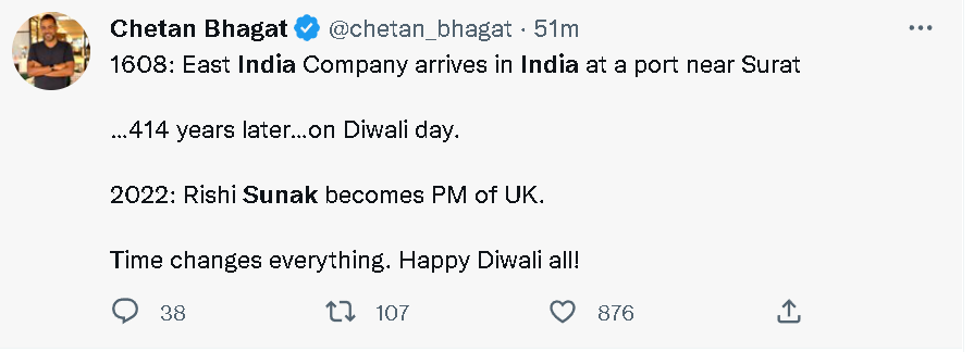 其中,不少印度网民和一些媒体人的感慨在于,曾经身为英国殖民地的印度,如今居然可以有人要反过来当上英国的首相了,而且还是发生在印度独立75年这个年头,以及印度人正在庆祝印度的“排灯节”的日子里,这让他们颇有一种“当家作主”的感觉。