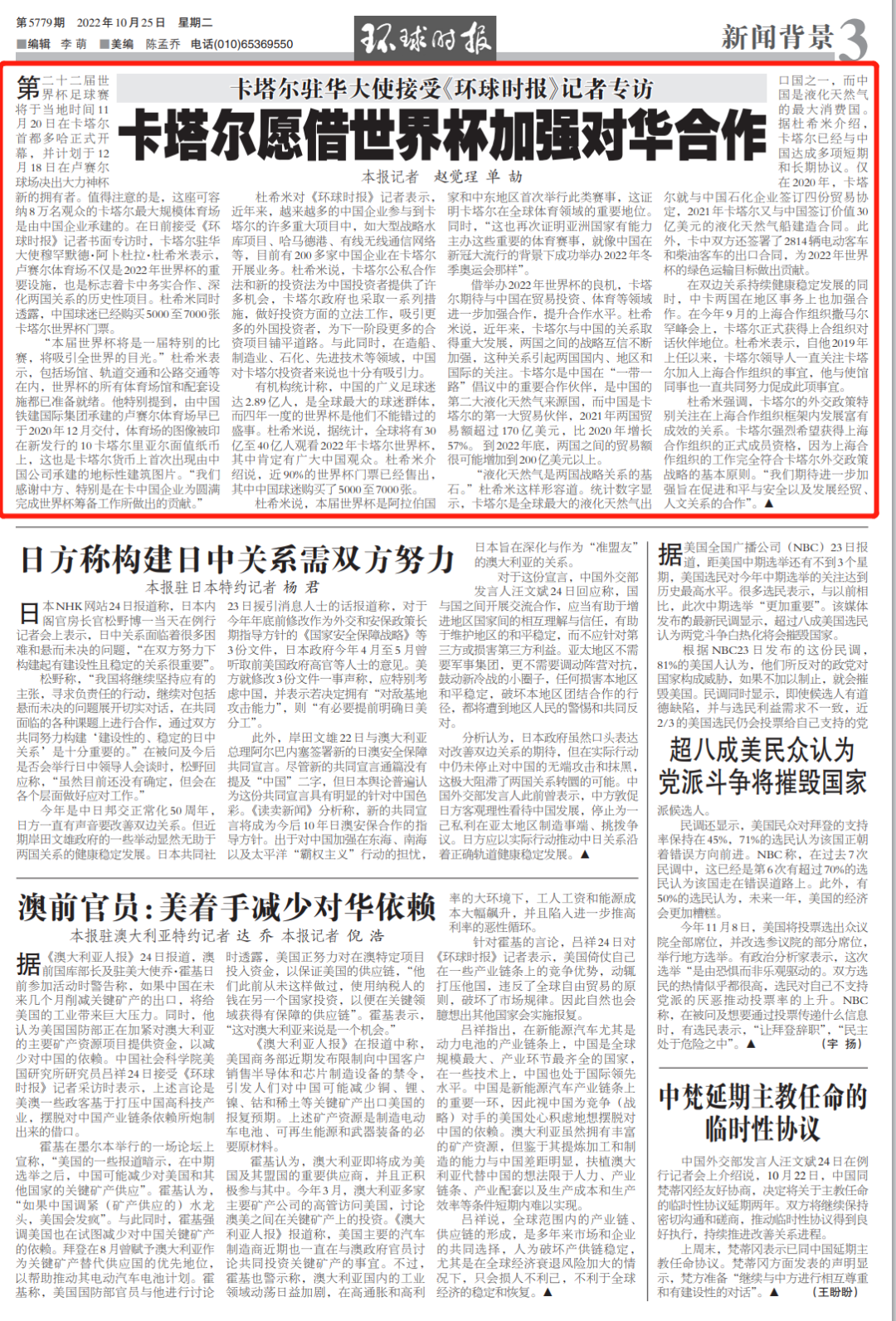 卡塔尔驻华大使接受环球时报专访:卡塔尔愿借世界杯加强对华合作