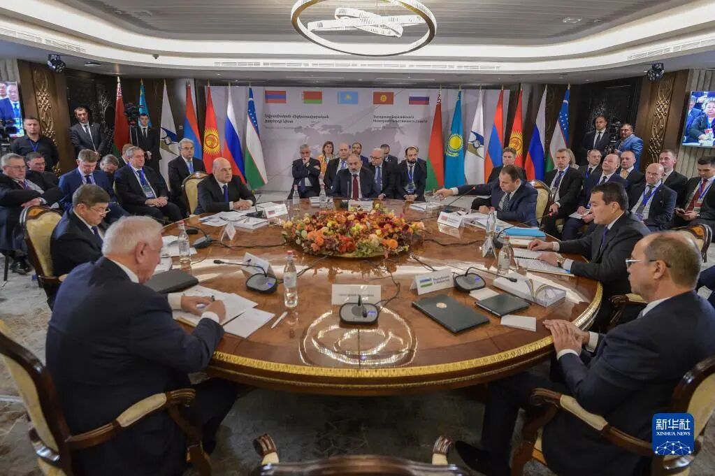 10月21日,亚美尼亚首都埃里温,欧亚经济联盟政府间理事会会议现场。图自新华社(阿萨塔·耶塞恩茨摄)