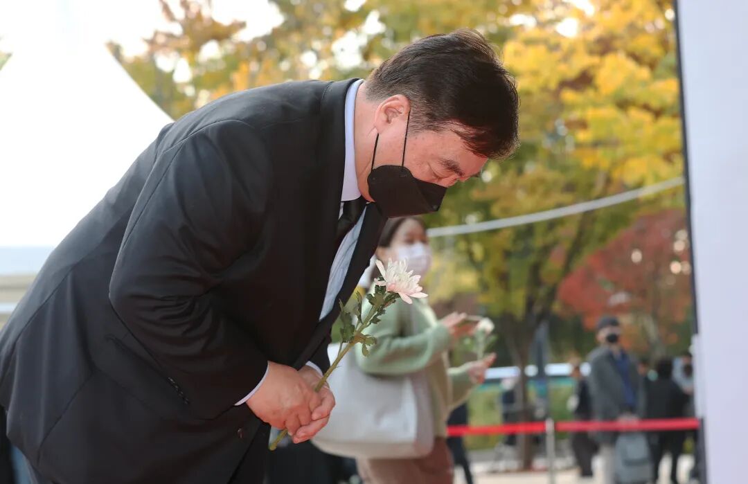 10月31日,邢海明大使前往设置在首尔广场的香堂吊唁梨泰院踩踏事故遇难者,向遇难者献花致哀。