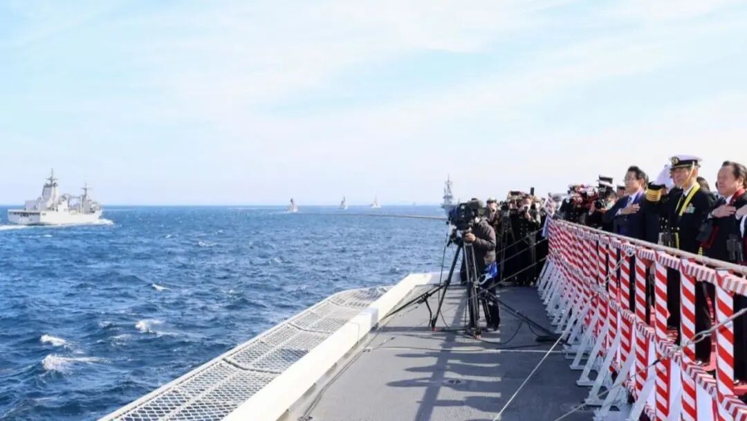 就在昨天,日本以纪念海上自卫队成立70周年为由头,在离东京不远的神奈川县相模湾举行“国际阅舰式”。日本海上自卫队的20艘舰艇和潜艇,以及来自美澳印加等12国的18艘舰艇参加。