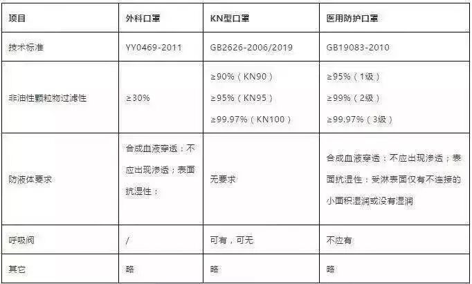 三种认证标准口罩分类. 图片来自:SIFIC 感染官微