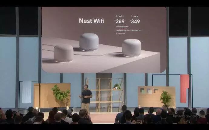 Nest 全家桶还有一款 Nest Wi-Fi,实际上就是路由器,当然,它也就加入了 Google Assistant 支持,同时也能像智能音箱一样使用。让Google 表示只需要一个Wi-Fi和一个放大器就能覆盖家中85%的空间。两个269美元,3个349美元,11月4日发售 。