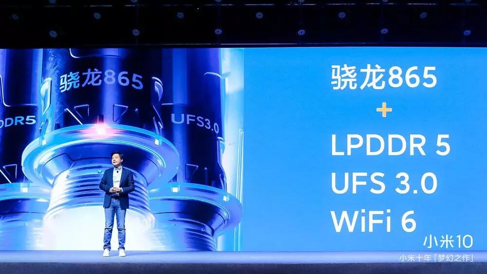 性能方面,小米在国产首发了高通骁龙 865,采用台积电7nm工艺制造,集成 Kryo 485 CPU 处理器、大核采用 A77 架构,Adreno 650 GPU 图形核心、官方宣称,骁龙 865 相比上代产品骁龙 855 CPU 性能提升最多 25%、能效提升最多 25%,GPU 渲染性能提升最多 25%、能效提升最多 30%,AI 性能提升最多 1 倍。