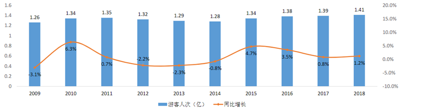 2018年中国接待的入境游客数量为1.41亿人次,而在2009年就已经达到了1.26亿人次。