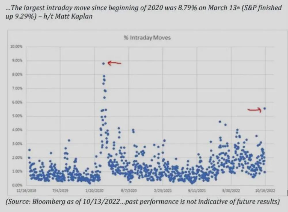 隔夜美股因高于预期的通胀数据开盘暴跌,一度跌幅逼近3%,然而最终收盘竟然三大股指皆反弹超2%,这令诸多资深交易员都目瞪口呆。当日标普500指数的波动区间高达5.03%,这是2020年3月18日以来的最大单日波幅,当时为7.22%,且美股因疫情爆发而触发熔断。