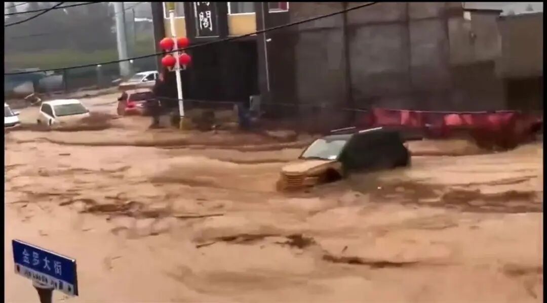 网传视频显示,一条街道上,污浊的洪水夹杂着树叶等物滚滚而过,有多辆车被冲走。有网友称,此事发生在山西省吕梁市中阳县金罗镇街上。