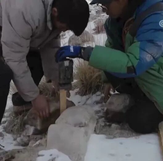吕玲珑向镜头展示,只要与雪豹保持距离,动作轻缓,雪豹就不会展现攻击态势;