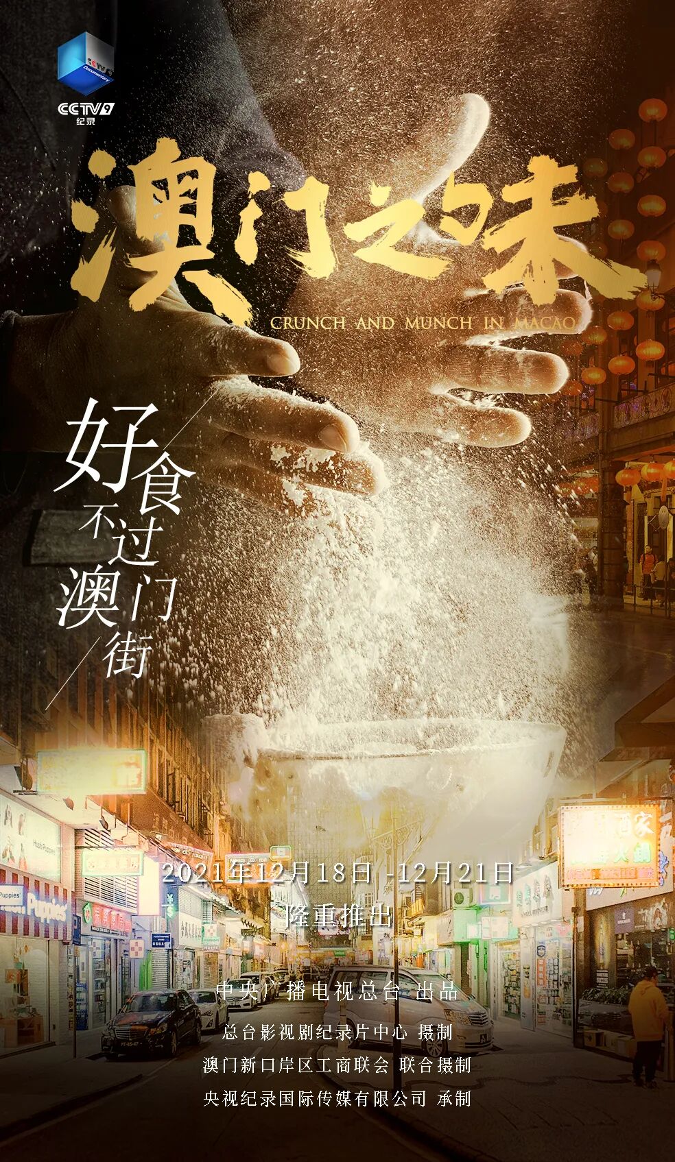 澳门回归祖国22周年之际,中央广播电视总台影视剧纪录片中心制作的4K纪录片《澳门之味》隆重开播。