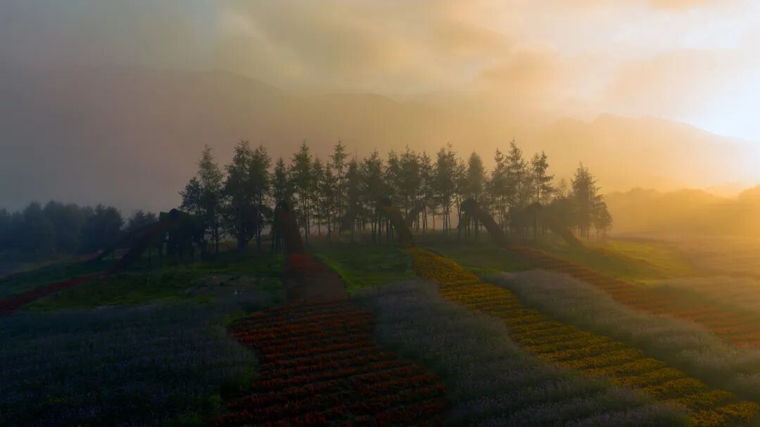 把视线交给天空,银河高悬,群星璀璨,这是夏日的红池坝国家森林公园。随着太阳的升起,大地开始明朗起来,氤氲的雾气是大地对夜最后的眷恋。