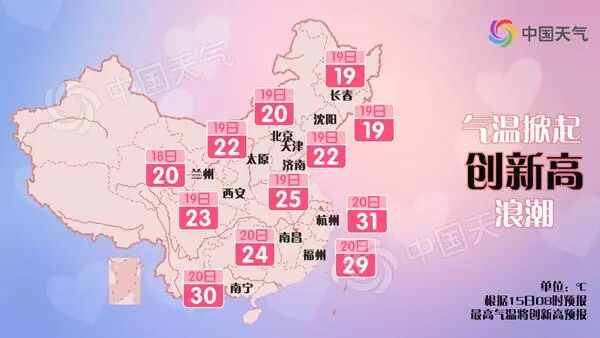 今起三天(16-18日),北方将率先开始一波升温浪潮,华北、西北、东北多地最高气温将陆续创下今年新高。另外,南方新一轮降雨将再度上线,江南、华南及西南地区东部将有小到中雨,其中江西、湖南、广西北部等地降雨较强。