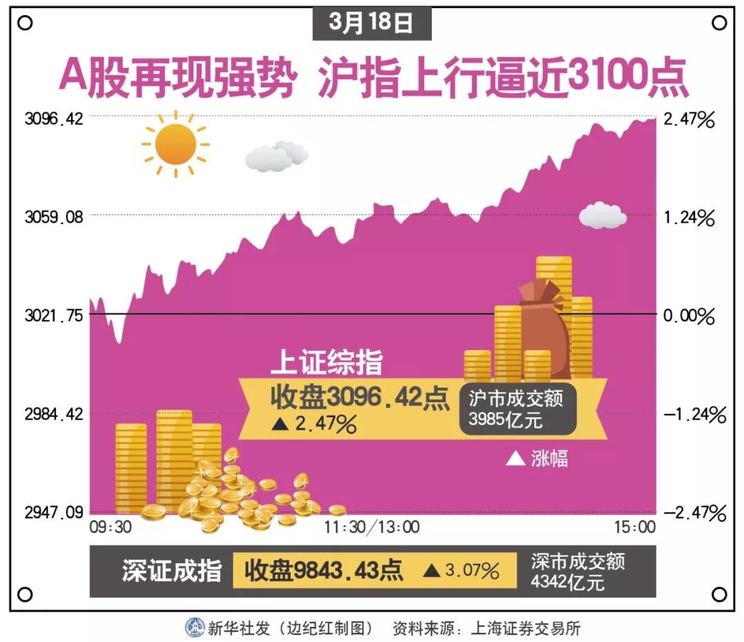 本周首个交易日,A股再现强势。上证综指上行逼近3100点整数位,深证成指录得逾3%的涨幅。
