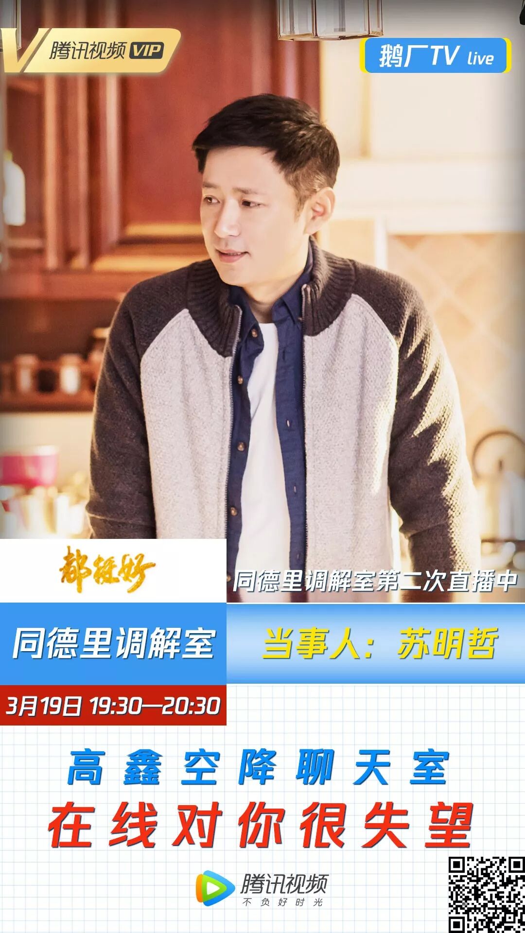 《同德里调解室》第二期今晚七点半直播,前方失望警告预警!当事人——苏家长子苏明哲 ,他将细细讲述自己日常失望的原因及经过,围观请扫码