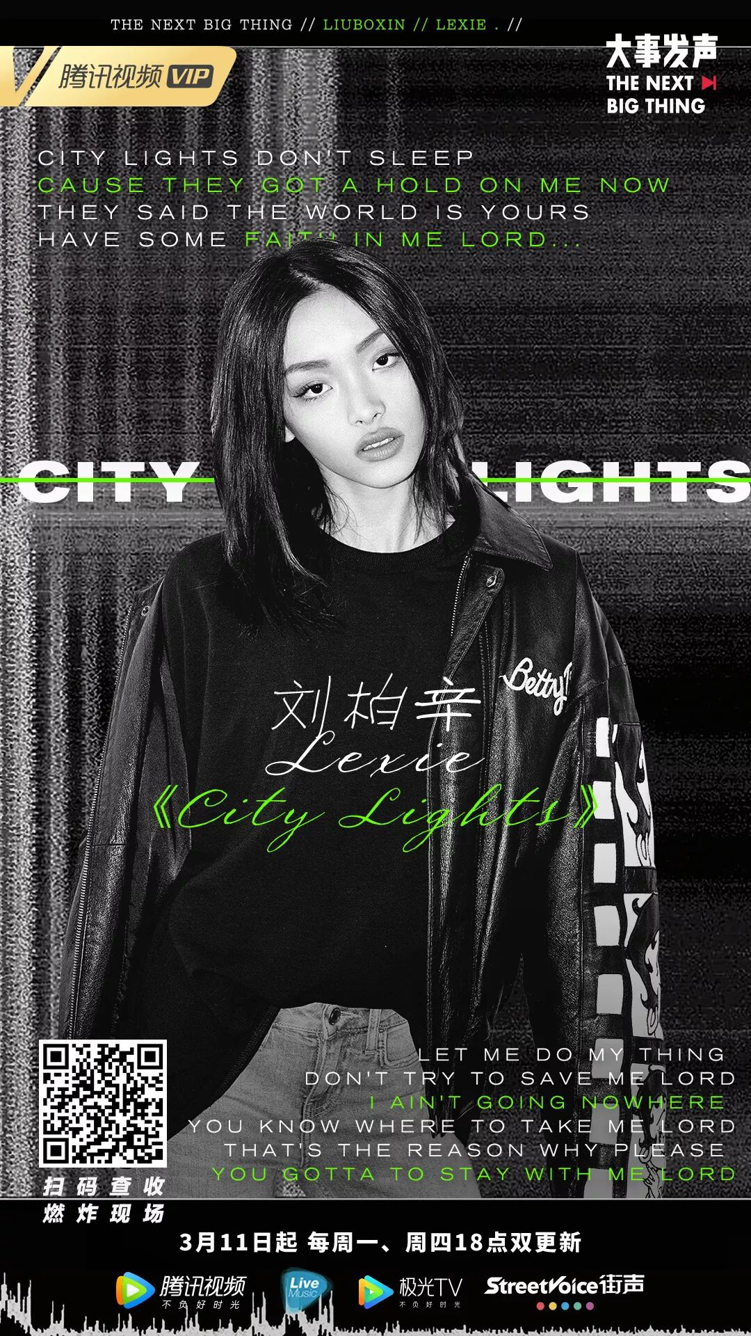 硬核少女刘柏辛Lexie携新单炸场来袭,热血说唱魔音贯耳,模特脸美颜暴击迷skr人!这首《City Lights》太霸气了8,开口的瞬间就起范儿了!迫不及待即刻扫码加入弹幕夸夸群献上360度花路彩虹屁辽↓