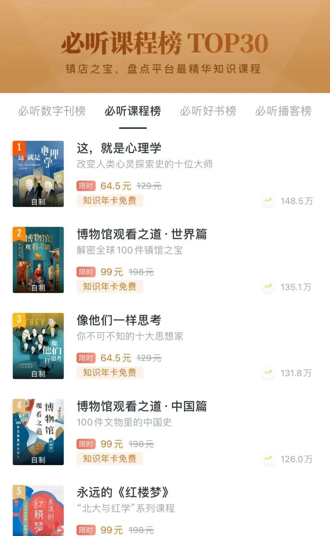 一位5年的老用户感慨,“三联中读的课程,是良莠不齐的知识付费领域的一股‘清流’。”从“永远的《红楼梦》”“《史记》百讲”,到“世界名著复习计划”“这,就是心理学”,为你量身定制兴趣图谱,纵向从古至今,横向遍及各学科,助你成为朋友中最渊博、有趣的人。 ![]()