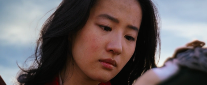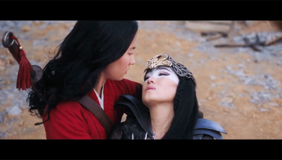 可话说回来,刘亦菲这几年,的确也没拍出像样的作品。这次饰演花木兰,按照粉丝与通稿的阵仗,本应该是一场翻身仗。迪斯尼的公主系列真人电影,被选中的演员在现实中的待遇也跟麻雀变凤凰差不多。刘亦菲虽然是我们的“神仙姐姐”,好莱坞的相关报道里都是“新人”,都得对这个名字进行解释说明,说她在好莱坞“一夜成名”不为过。只是没想到《花木兰》口碑差成这样,豆瓣一开分就不到5分,到现在还挣扎在4.9。神仙姐姐表演向来木讷,这部片子还算好的。那张海报可能是花木兰最像战士的时刻,一名战士的果敢、勇气、不屈,刘亦菲接住的戏份真是不多。最夸张的是与巩俐对戏那场,巩俐扮演的女巫为了救她被射中,死在她怀里的时候,花木兰一副无动于衷的样子,大概在想,大家连朋友都不是,怎么突然这么客气,牺牲自己救我,真是不敢当呢。迪士尼真人电影,本来就是非常直白坦率的,有些价值观与目的,就是讲在台词里的。《美女与野兽》,你去看艾玛·沃森扮演的村花,一切也都发生在唱词里,比方说村民都在唱,这是位非常特别的姑娘,她自己则琢磨,我的人生是不是还有其它可能性。她去救父亲骑上马就出发了,她爱上野兽没有经过太多犹豫与纠结。因为故事线简单,情节与情节之间,大量的戏份,都依靠锅碗瓢盆们的唱跳互动与插科打诨。小朋友肯定是爱看的,家长那边过得去就行了。到了《花木兰》,原版动画里的木须与蟋蟀,就在充当这部分功能。但真人版花木兰似乎有点野心,舍弃了会将电影幼稚化的魔法角色,转而增加了女巫角色,试图制造一点魔幻大片的气氛。大概是想在类型上有所突破。魔幻与魔幻还不一样。在西方文化视角里,花木兰一身武艺,也就是他们说的“气”,是要归进去的,直接表现是“轻功”,飞檐走壁技能,那与巩俐扮演那个女巫的变身术,是一个类别的。所以女巫见到花木兰,产生惺惺相惜的情感,在他们的逻辑里是理所当然的。但在中国观众视角里,轻功只是武侠而已,武侠与仙侠能一样吗?于是整个电影里,女巫突兀极了,因为你放眼望去,女巫竟然是孤例,整个世界里没有其它任何与女巫适配的角色、魔法,连个传说都没有。好比一只会说话会耍棒的猴子,游荡人间,半天没见到个妖怪,猴子一定怀疑自己进错了片场了。哦,倒是有只凤凰,一只像风筝的凤凰,不过凤凰倒挺像是花木兰心境的视觉化呈现,电影里也说是她们花家的图腾,凤凰几次出现,都是花木兰的重要抉择时刻。不是那个世界里真正存在的魔法生物。而且这个女巫法力之强大,会变身,能变脸,会飞翔,武力值也很强,没交待弱点,动机,突然死在普通人一支箭下。这个角色很难自圆其说。男主角是工具人,将军是工具人,父亲是工具人,这些都罢了,女巫这么重要,随随便便就死了。女巫与木兰的羁绊也不够清晰。按这剧情设置,女巫对木兰的成长至关重要。她本来是一个害怕展现“气”的女孩子,从军只是为了代父,要为国为民,乃至活出真自我这两个更进一步的层面,是懵懂的。女巫激励了她,提醒了她自己究竟是谁。这是心灵启迪者的角色,与主角的人物关系要刻画得动人,起码得有建立联系的戏份,这样她的牺牲才能起到振奋主角的效果。但片子里,女巫的爱毫无来由,大概是一见钟情,张口就要跟她组队打架,被木兰一口拒绝。拒绝了也不生气,一见木兰误终生,果然将命搭上了,死也死得不明不白,法力如此强大,到了该死的时候,区区一支短箭就了结了。死前遗言非常鸡汤,“take your place”。另外让人看得愤愤不平的一幕是军营洗澡。这场戏里,木兰要在身材方面展现自己的军人体魄。这话是导演说的,她说演员需要塑造自己的身体,要让女扮男装混在军营里不被识破具有可信度,这场戏里展露的肩膀,是一对属于士兵的肩膀。意思就是坚毅、有力,起码得拥有肌肉线条,据说刘亦菲为了打戏等训练了三个多月。重点来了。男主角追到湖边,脱掉衣服,跳入湖中,眼看着要跟木兰一起洗澡。木兰身份揭穿在即,害羞、担忧、恐惧,情绪非常复杂,情势命悬一线,她会如何给自己解围?如何安全逃过一劫?观众看到这里心都提到嗓子眼儿了——完全没有!只见木兰露着柔弱白晰的双肩(说好的士兵的肩膀呢?),气鼓鼓地说,“我不是你朋友”,仿佛一位初中(美)少女,对在后排扯她头发的男同学生气气。体格强健的男兵,向另一位男兵同浴被拒绝后,不纠缠不嬉闹地,远远地不痛不痒地聊了几句,就走了。来都来了,也不把澡洗完吗?不快快乐乐跟木兰打场水仗再走?《花木兰》几乎是部超级英雄电影。有超能力“气”,开始时受内心所限,未能施展,受环境激发,爆发出勇气,穿越层层阻碍,最终完成使命,并获得自我成长。漫威系列基本就是这个套路。在《花木兰》里,你几乎感受不到她的情绪。唯一处理得还算过得去的是父女情,父亲对她纵容,鼓励,虽然最后还是受传统观念影响,也要求木兰见媒婆,相亲,出嫁,教育她好好去当妻子,才是对家庭的忠诚。第二天发觉木兰把他的装备卷跑了,第一反应也是孩子危险了。木兰回家后,父亲那几句话也挺感人,他说,“你是一个战士了。你一直是,只是我以前一直没能看到”。(其实父亲立场如何转变,也没交待过程)除了父女情,木兰似乎就是个木头孩子。在军营里,甄子丹扮演的将军,按理是个亦父亦师的角色,木兰差点坦白真相,应该也是基于对将军的信任,但这