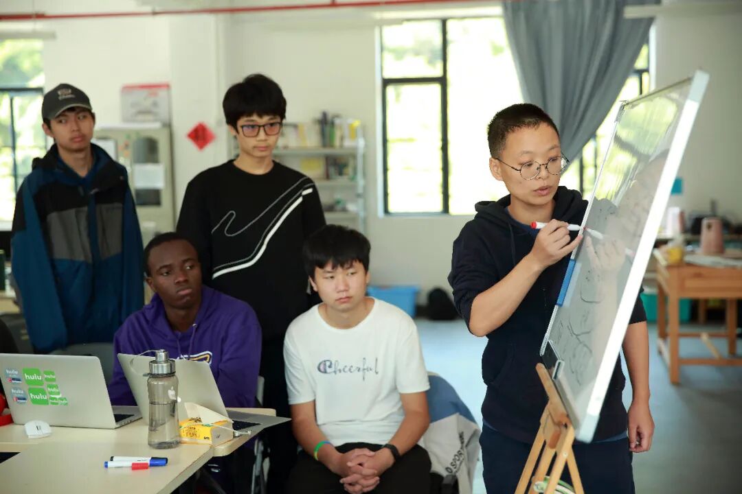 雷涵和陈艺文对这本书不是很感兴趣,因此没有选这节课,但他们今年读完了另外两本和经济学有关的书。雷涵告诉我,当初之所以选择留下,除了可以学点技术外,还有一个很重要的原因:这里和过去经历过的“养殖场”般的教育环境不同,“可以自己选择感兴趣的课”,“可以和老师像朋友一样沟通”。“很重要。我在初中的时候属于那种坏学生,不好好学,老师还会体罚,在这里完全没有被压迫的感觉。”雷涵说。陈艺文也提到了这点,他觉得现在的自己相比于以前,敢于表达了,而且面对“领导”不再胆怯。他口中的“领导”其实是欧阳艳琴,“因为她是校长,其实和那些老板差不多的(角色),你把道理讲出来,欧阳老师就不会为难你”。在他看来,自己身上发生的这些改变都是“以后职场上会用到的能力”。两年多的时间里,实务学堂曾因为资金问题几度搬迁,从最早的北京昌平北七家,搬到马池口,又搬到沙河镇。今年上半年,因为疫情,北京迟迟没有通知线下复课,欧阳艳琴将学校搬离了北京,南下广州。现在,实务学堂位于广州白云区帽峰山风景区附近的一家自然教育基地里,位置很偏,距离市中心40多公里,但环境不错,有草坪、操场和游泳池,教室连着一个几十平方米的大天台,不远处就是葱绿的大山。上写作课的时候,欧阳艳琴会带着孩子们到野外的树下或草坪上,晒着太阳,一起讨论。