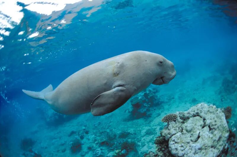 儒艮性情十分温顺,也是唯一的食草性海洋哺乳动物