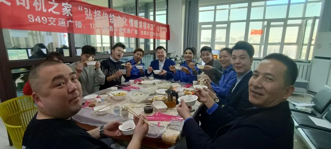 冬至,是我国二十四节气中一个重要的节气,也是中华民族传统节日。今天,949交通广播、1074维吾尔语交通广播“弘扬传统文化 情暖幸福冬至”融媒体视频直播温暖上线,主持人、记者来到乌鲁木齐的士之家、公交司机之家、乌鲁木齐热力集团有限公司换热站、949交通广播携手乌鲁木齐银行打造的爱心驿站,为一线劳动者送去热乎乎的丝路东方虾仁水饺和暖暖的冬至祝福。