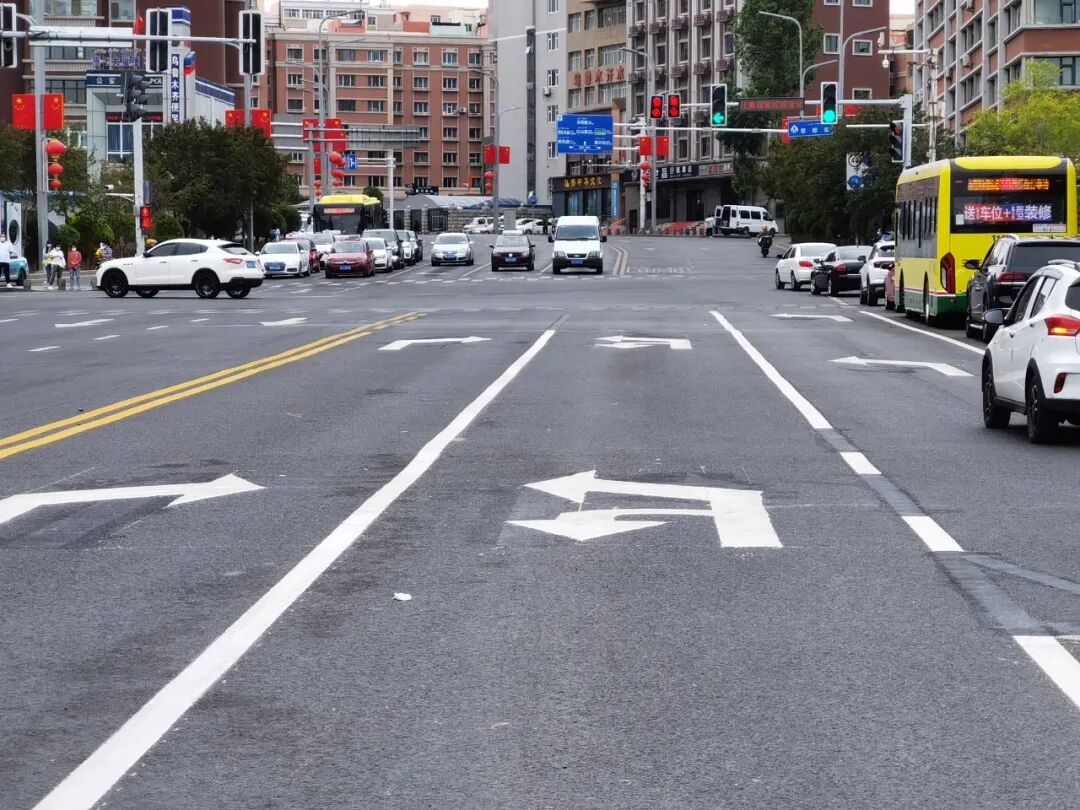 由于BRT线路通行改变,根据南湖南路道路的实际交通流量情况,将BRT车道保留为一条右转车道,另外一条原来的直行车道变更为左转加掉头的社会车道,从而缓解北向南左转及掉头的车流压力,以此提高车辆通行效率。