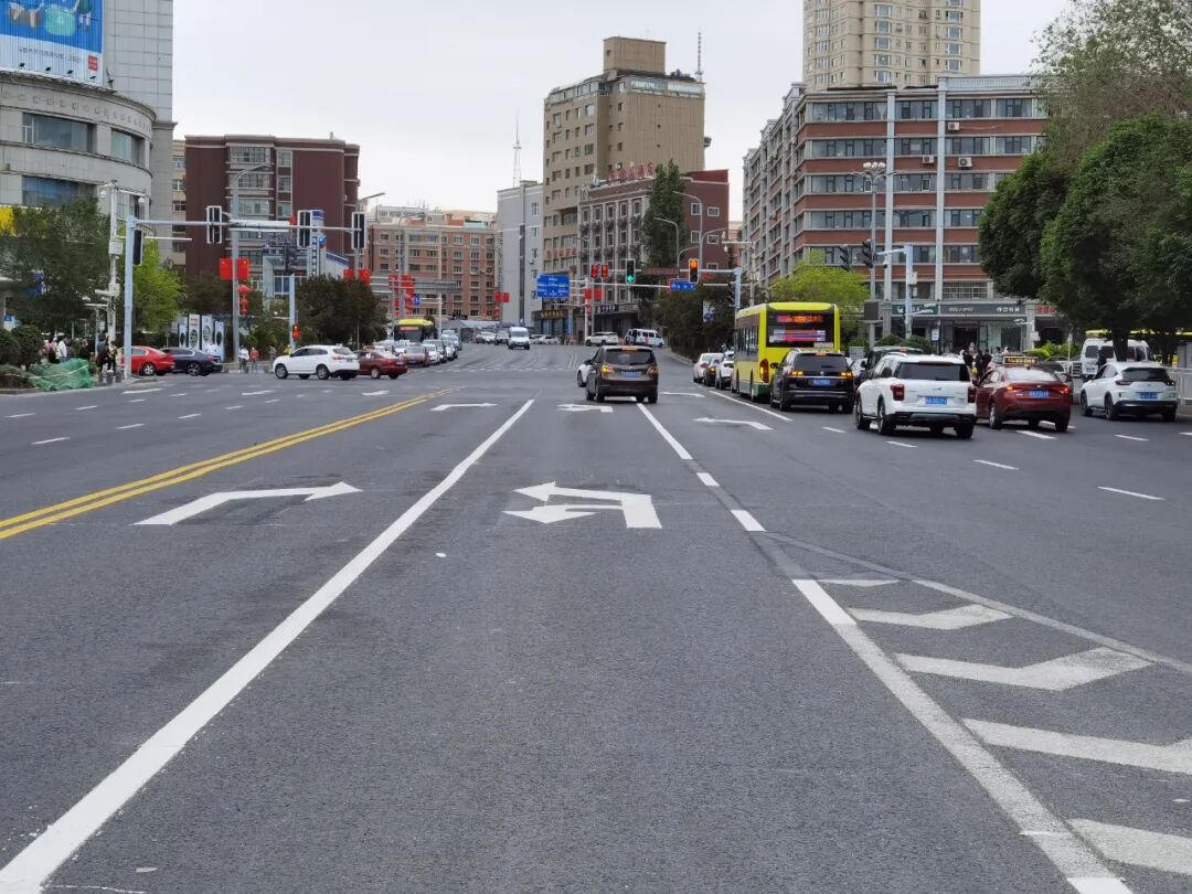 乌鲁木齐市公安局交警支队水磨沟区大队南湖路中队民警王涛介绍:南湖南路北向南方向前期共有六条车道,两条BRT车道(一条直行车道和一条右转车道),四条社会车道(一条右转车道,两条直行车道,一条左转车道)。