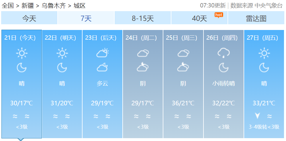 小满,也是夏季节气中升温速度最快的一个节气。仿佛一夜之间,夏季被唤醒,全疆各主要城市中,多地最高气温突破30℃,吐鲁番的最高气温更是达到了38℃。