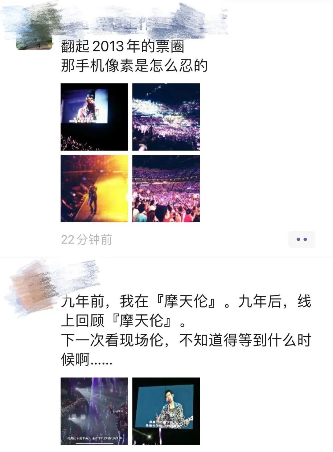 即便是重映,周杰伦这场演唱会也在朋友圈、微博等社交平台刷屏。“我们什么时候能够再看一场演唱会”“距离上一次看周董演唱会已经4年了”的感叹成为主流,不少网友还手举曾经的周杰伦演唱会门票,与这场重映演唱会的画面合影,“2015&2022”“2013年&2019&2022”等独特表达方式在朋友圈刷屏。![]()