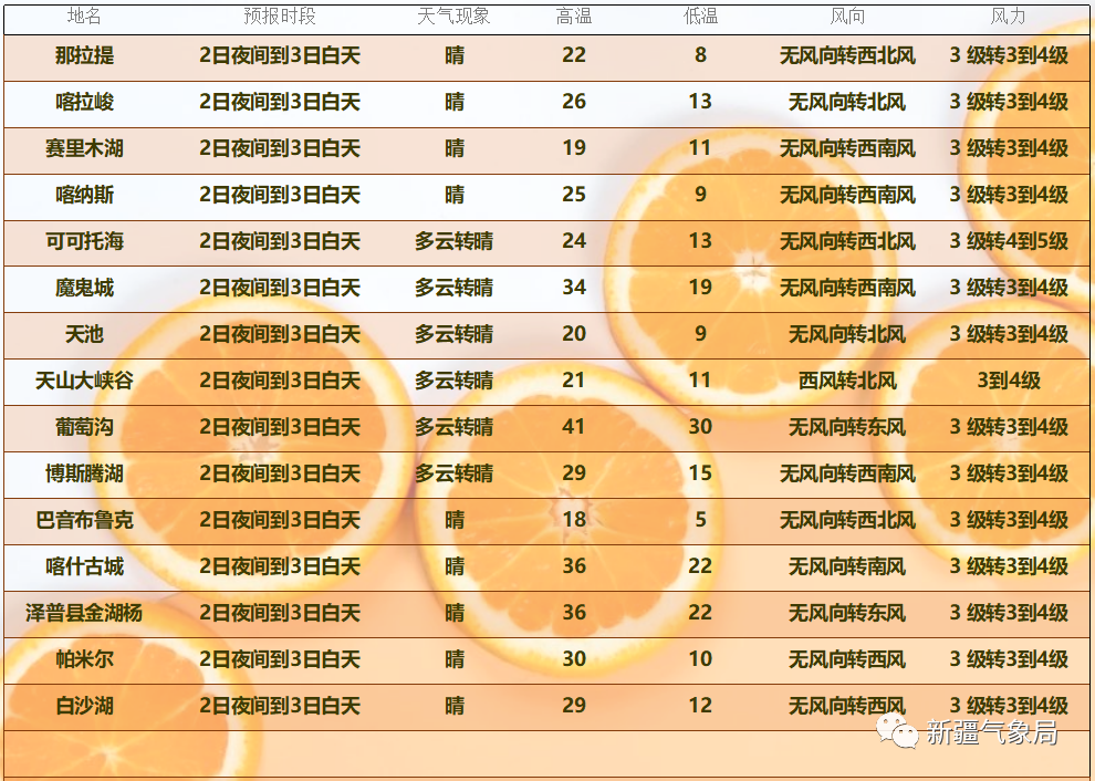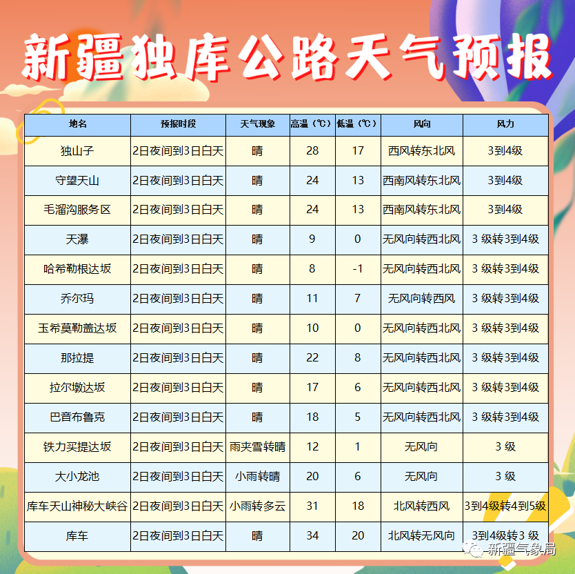 3日夜间到4日白天,北疆西部、天山山区、哈密市北部山区等地的部分区域有微到小雨,山区局部区域有中到大雨。南疆、东疆大部有35℃以上的高温天气,部分区域最高气温37℃以上,局部区域40℃;吐鲁番市局地气温达45℃。全疆其它地区以晴或多云天气为主,风力不大。