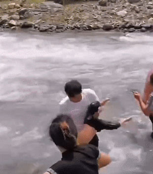 旁边的游客也纷纷下水救人